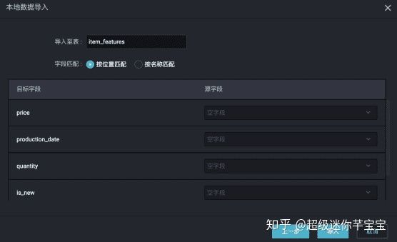 分隔符为本地文件的列之间的分隔符,默认为逗号。如果本地文件中第一行不是标题,则选择起始行为1,不勾选首行为标题。下一步,然后输入新建的odps表名,选择按位置匹配(只有前面选择首行为标题,才可以选择按名称匹配),然后导入。