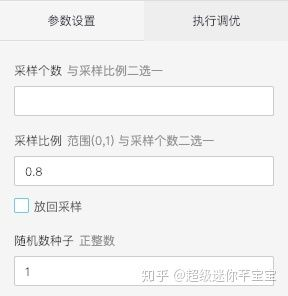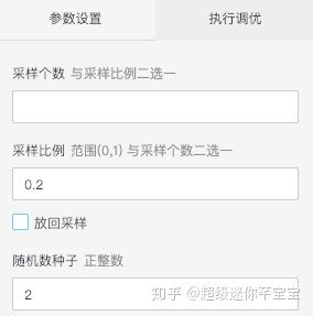 对于所有的训练数据,我们可以有重叠的选择出训练集和测试集。拖入两个随机采样组件,数据预处理-采样与过滤-随机采样。字段参数设置如下图: