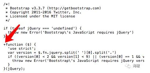 5分钟前我们看到的那些丧心病狂的写法,其实原理都一样,通过运算符把声明变成执行。当然这些符号都不会影响函数的正常执行结果。但是问题又来了,这种泯灭人性的写法,现在居然还挺常见的,例如: