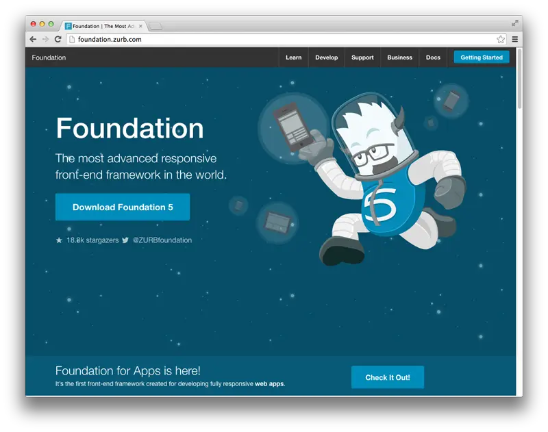 Foundation是排在第二名的框架。ZURB这样坚实的公司一直支持着Foundation,所以这个框架有强大的基础。Foundation现已用于许多大型网站,包括Facebook,Mozilla,Ebay,Yahoo!和国家地理等。