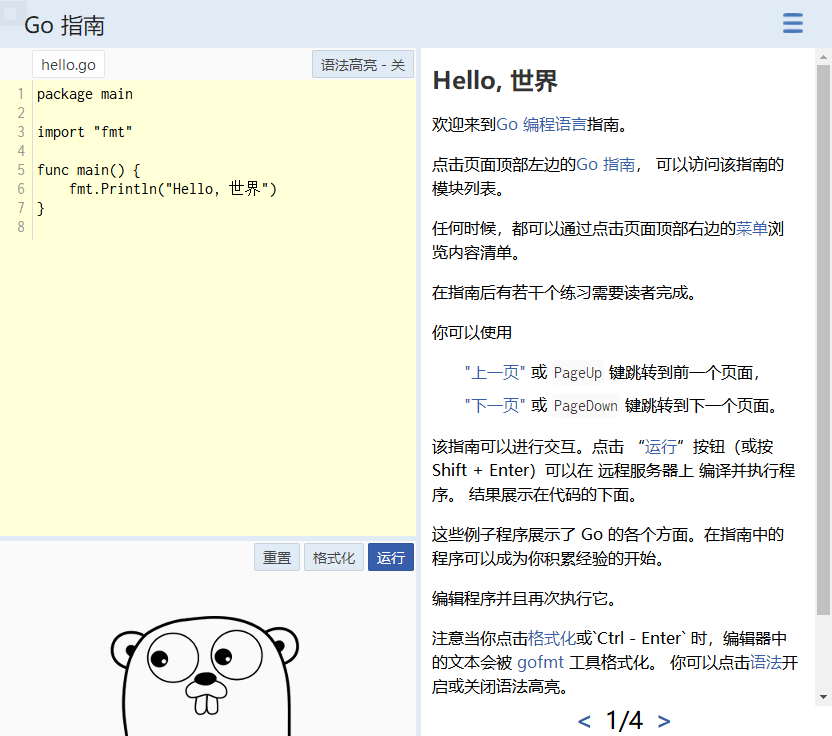 Go 语言的交互式简介,它分为三节。