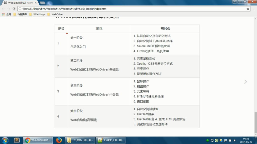 发现《5.web自动化测试视频selenium-day01的04_自动化测试大纲》中,提到有四个章节,并且有 UnitTest 相关的内容。