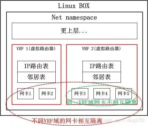 Linux内核在4.3版本中引入了VRF的初步支持,并在4.8版本形成完备版本。Virtual Routing Forwarding虚拟路由转发,可以将一台Linux Box的物理路由器当多台虚拟路由器使用,能很好的解决租户路由隔离问题,避免直接使用策略路由。因此,可以将不同租户的网卡加入租户所属的虚拟路由器中来实现多租户的虚拟路由。