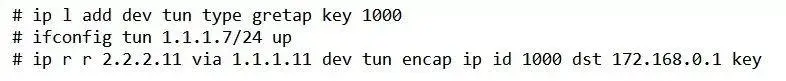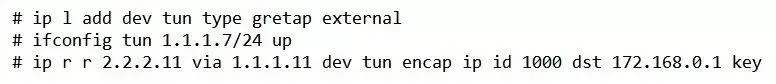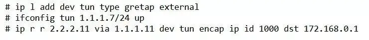 ip r r 2.2.2.11 via 1.1.1.11 dev tun encap ip id 1000 dst 172.168.0.1 key