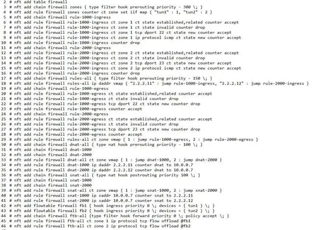 Nftables是一种新的数据包分类框架,旨在替代现存的{ip,ip6,arp,eb}_tables。在nftables中,大部分工作是在用户态完成的,内核只知道一些基本指令(过滤是用伪状态机实现的)。nftables的一个高级特性就是映射,可以使用不同类型的数据并映射它们。例如,我们可以映射iif device到专用的规则集合(之前创建的存储在一个链中)。由于是hash映射的方式,可以完美的避免链式规则跳转的性能开销。