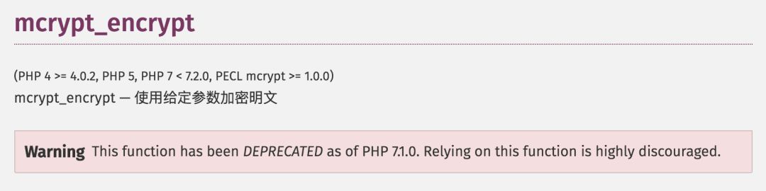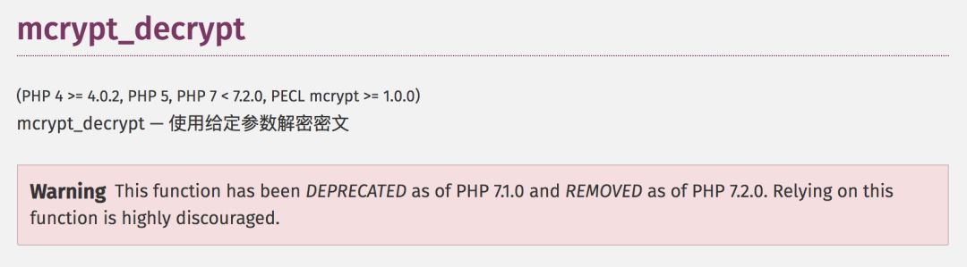 在 PHP7.2 版本中已经被弃用了,在新版本中使用 openssl_encrypt 和 openssl_decrypt 两个方法。