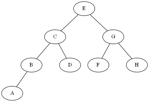 从根节点开始(注意并不是先访问根节点),中序遍历根节点的左子树,然后是访问根节点,最后中序遍历右子树。根据上面的二叉树中序遍历结果是 ABCDEFGH。