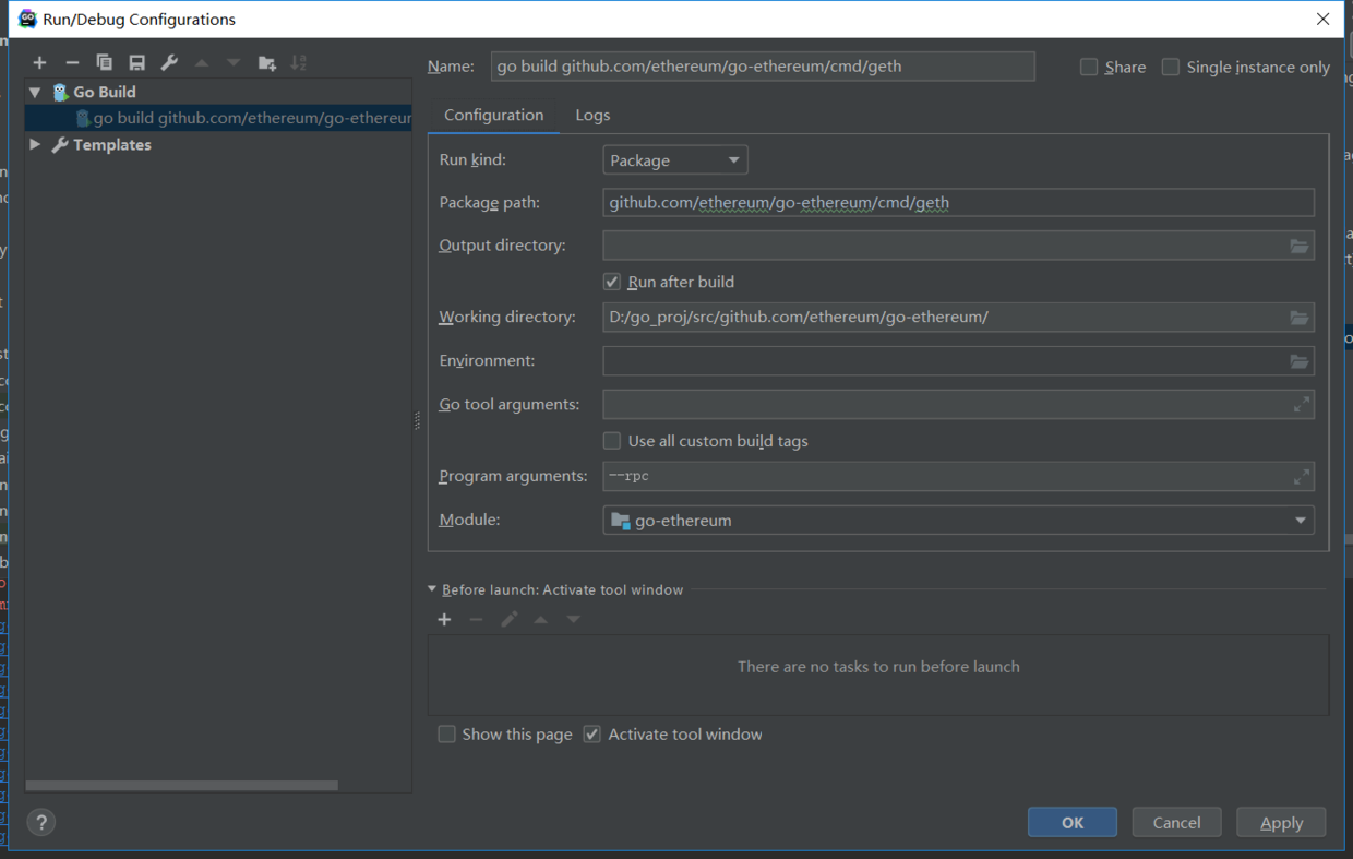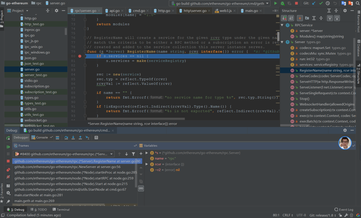 开始是按goland默认的模板对cmd/geth/main.go文件进行debug,会报以下错误