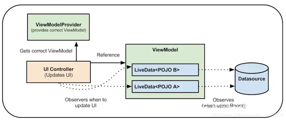 业务模块使用livedata的架构模式。 模块内基本架构: