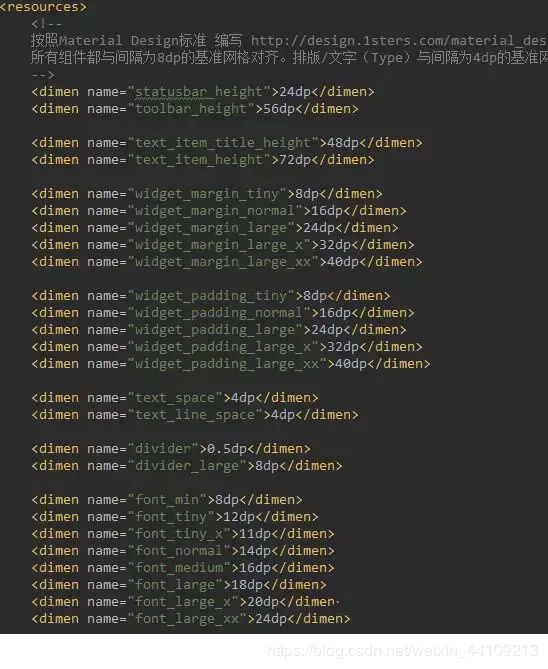 内容包含: 文字size,大中小几种规范; 组件外距/内距(margin/padding) 统一只有几种规格; 分界线长度,宽度,颜色; 文字颜色,主颜色,次要颜色,最次要颜色; activity主题,状态栏,标题栏,背景颜色,光标颜色,问题颜色等等; dialog主题,圆角,边距,底色;
