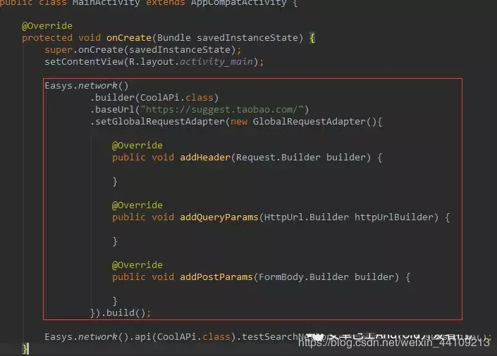 集成新组件的实现,源码有相关demo,使用责任链的设计模式。 以网络库为例,见: