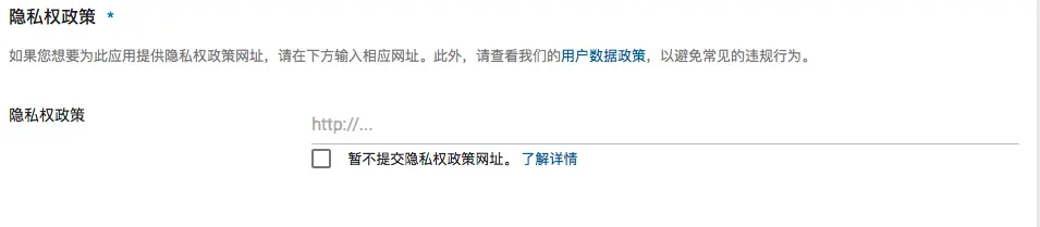 隐私政策,刚开始一脸懵逼,其实就是一个静态Html页面,里面写一些保证书之类的,保证不会把用户隐私泄露出去,这个相当于国内注册的时候,都需要勾选的用户协议,并且必须同意的H5界面,我就是把我们App的用户协议放上去,没什么问题,都填写完,点击保存草稿