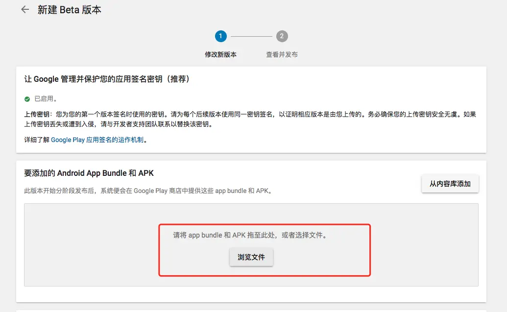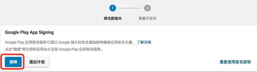 会有个签名询问,点击继续,然后就到了我们熟悉的界面,上传Apk项目,这里有一个坑,就是google play 不允许上传相同版本号的Apk,比如,你上传了一个版本号为10的项目,后来发现一个bug,紧急修复后,版本号不想改动,想直接替换之前那个版本号为10的项目 ,提交后应用平台会提示,已提交过版本号为10的项目,就是该平台不提供删除之前包,和替换之前包的功能,只可以通过版本升级来提交Apk包,所以我只能将版本号改为11,如果有其他办法,欢迎留言向我拍砖