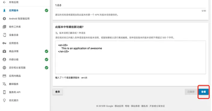 根据注册的开发者账号,登入开发者平台 play.google.com/apps/publis…,然后点击创建应用