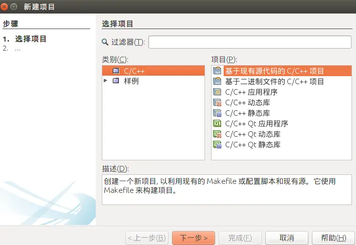 搞完上面两步,距离成功只剩一点点了,最后来下载安装netBeans,直接官网下载就可以,我安装的是8.0版本的,要选择支持C/C++开发的那个版本。 安装成功后打开netBeans,新建项目。选择基于现有源代码的C/C++项目。