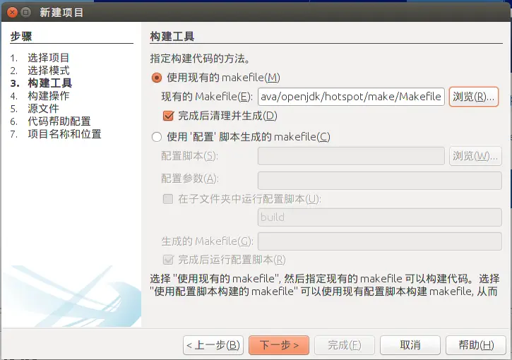 /home/java/openjdk/hotspot,选择定制,下一步。