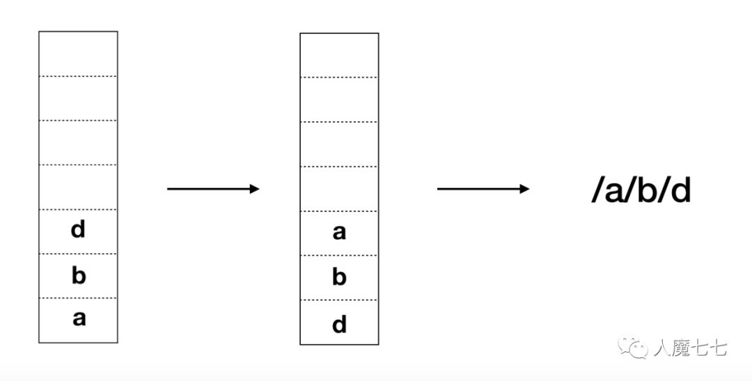 把非空的元素目录比如a,b入栈。当碰到( . )不做操作,如果遇到( .. )如果栈不为空则出栈