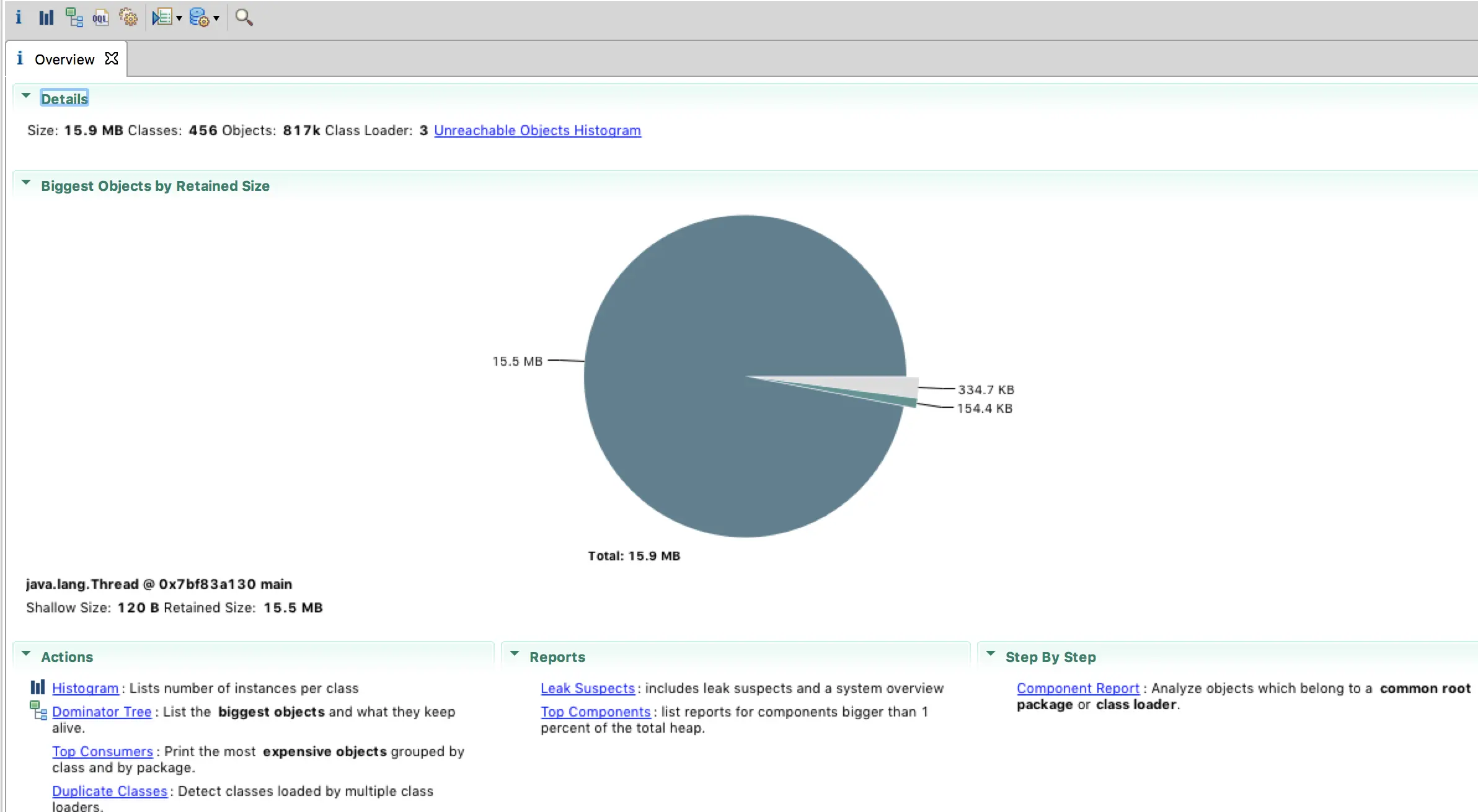 4.Leak Suspects通过MA自动分析泄漏的原因。