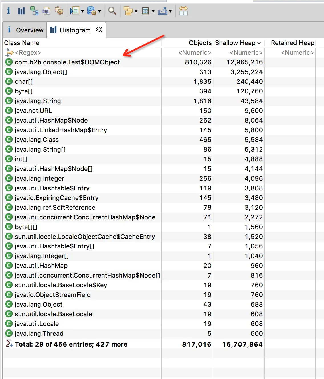 1. Histogram可以列出内存中的对象,对象的个数以及大小。