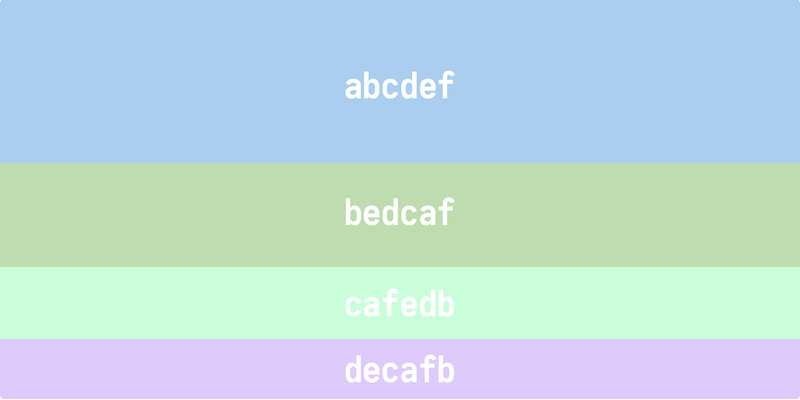 淡颜色使用a、b、c、d、e、f这六个字符,组合生成 RGB 色值。
