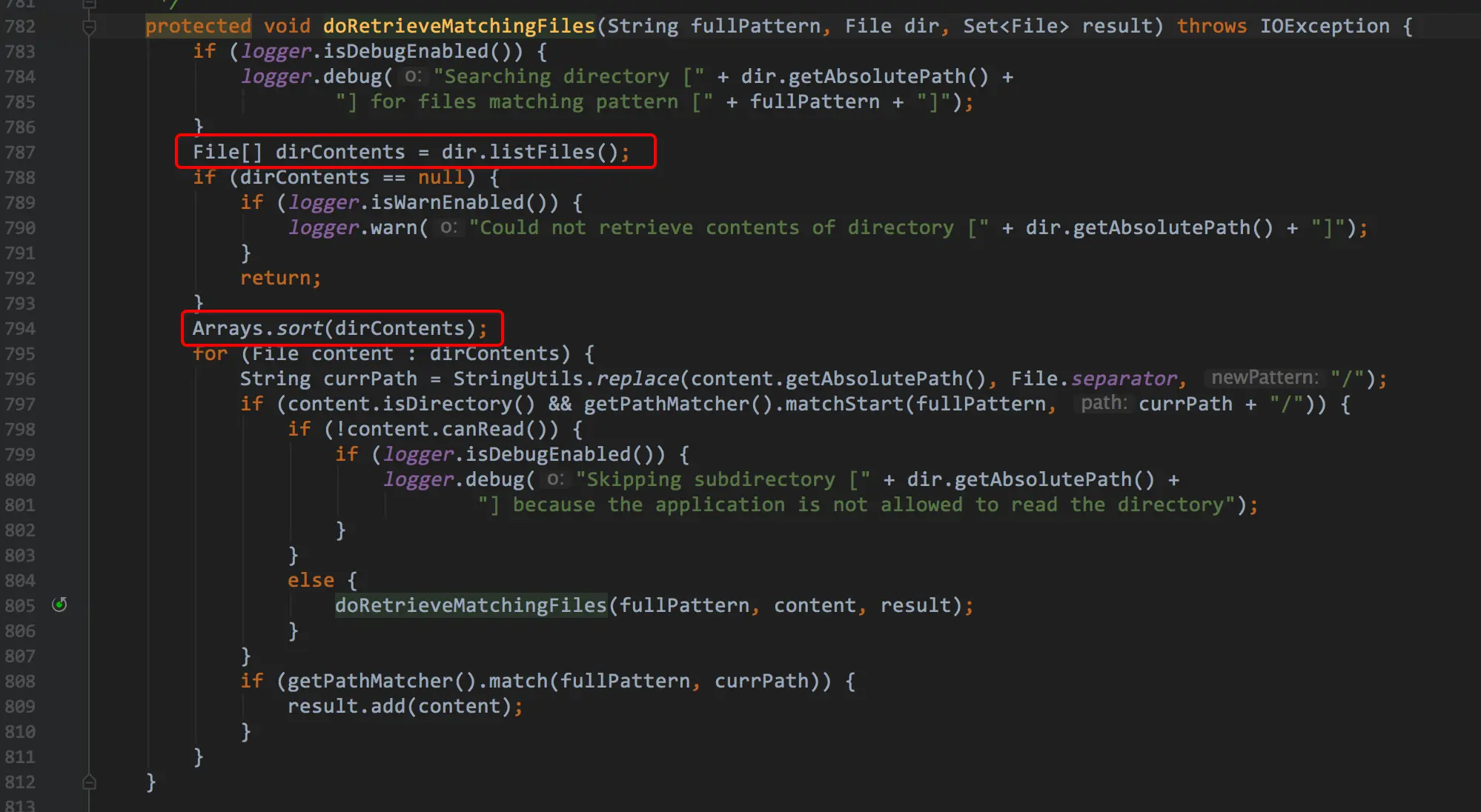 现在范围已经很小了,我们从前面的猜想,到验证猜想,已经把目标逐步缩小,现在问题就只剩下一个,只要弄清楚PathMatchingResourcePatternResolver的逻辑,一切就豁然开朗了