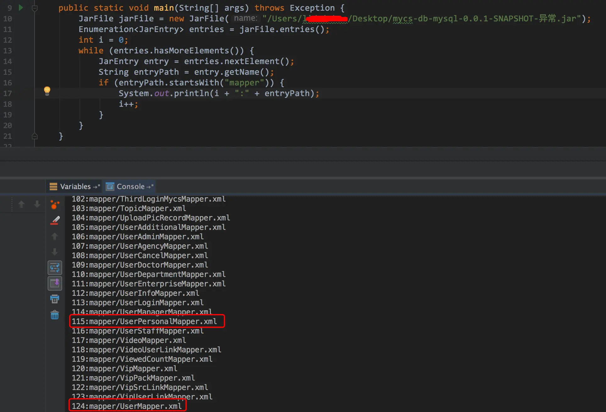 坦白说,其实这种两个mapper引用的做法我认为是非常不规范的.因为资源文件打进jar的文件排序是非常不可控的,他可能会因为构建工具的不同比如Maven、Gradle,甚至还会因为构建工具的版本,比如Maven的版本,还有可能受到环境,比如window、linux等等的影响.之所以本地开发时候没有发现问题,纯属是偶然成功.我们最后再来用简单的JDK Api验证一下问题.我们拿一个能正常启动和报错的jar