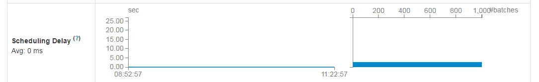 Spark中的RDD和SparkStreaming中的Dstream,如果被反复的使用,最好利用cache(),将该数据流缓存起来,防止过度的调度资源造成的网络开销。可以参考观察Scheduling Delay参数,如下图:
