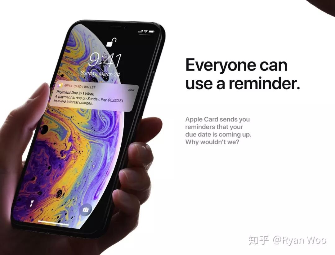 独占的 W 芯片提供快速连接,快速切换设备,方便的快充,快速收纳,正如同苹果这个大的生态圈一样,只有苹果可以提供最底层的核心支持,在 Apple Card 上面当然也会开足后门,全面支持这个新产品,所以系统级别的还款提示,你再也不会意外忘记还款导致几十块的 Late payment fee: