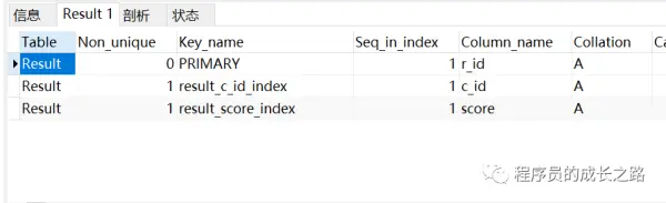 show index from Result;执行 sql