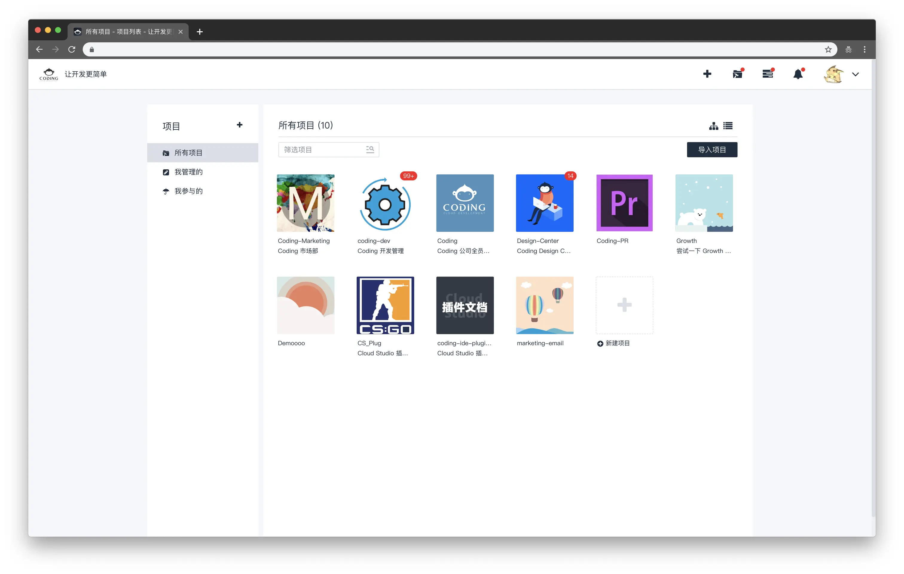 CODING 研发管理系统是基于项目进行的,我们依据组织架构建立了相关项目并使用【成员管理】添加相应部门的人员。通过项目这种扁平化的管理形式,帮助企业加快反应速度,提高自身敏捷性。