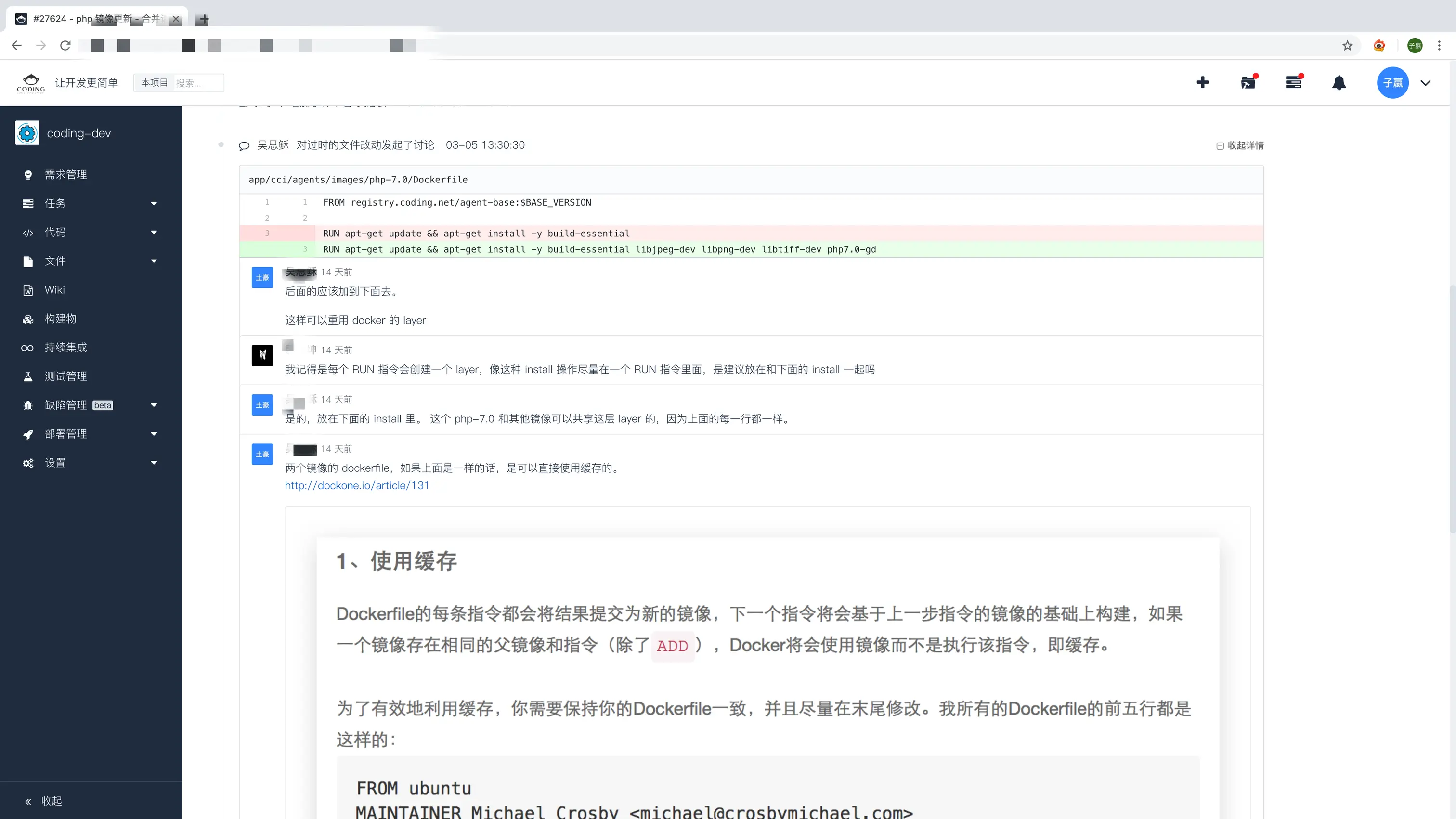 市场部的同事使用 CODING 任务管理中的讨论功能,可以实时讨论和跟踪项目进度。