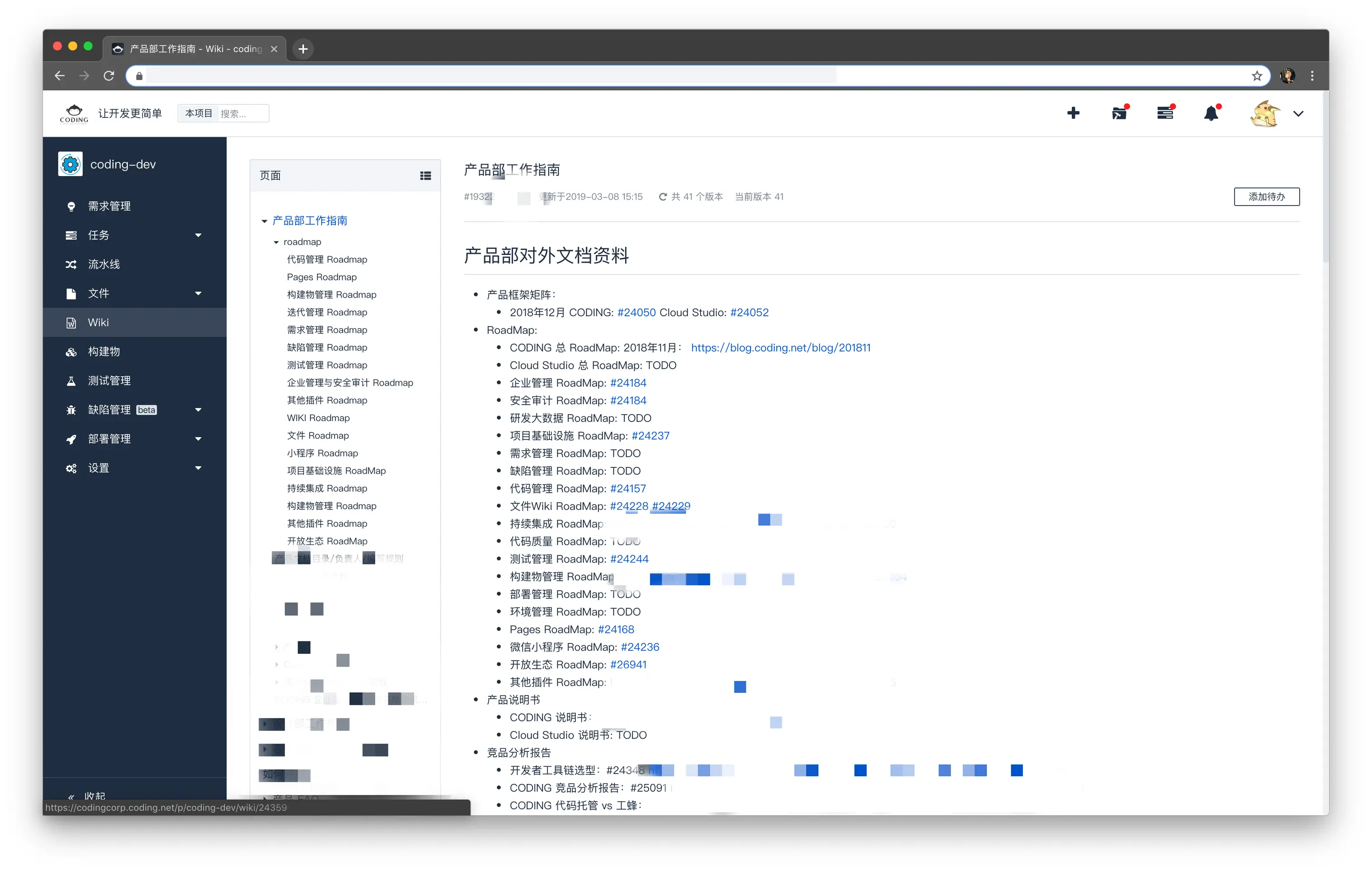 在确认功能顺利上线后,产品经理会在 CODING Wiki 中更新 Roadmap,提示功能已经上线。方便市场部进行 Campaign 的计划。