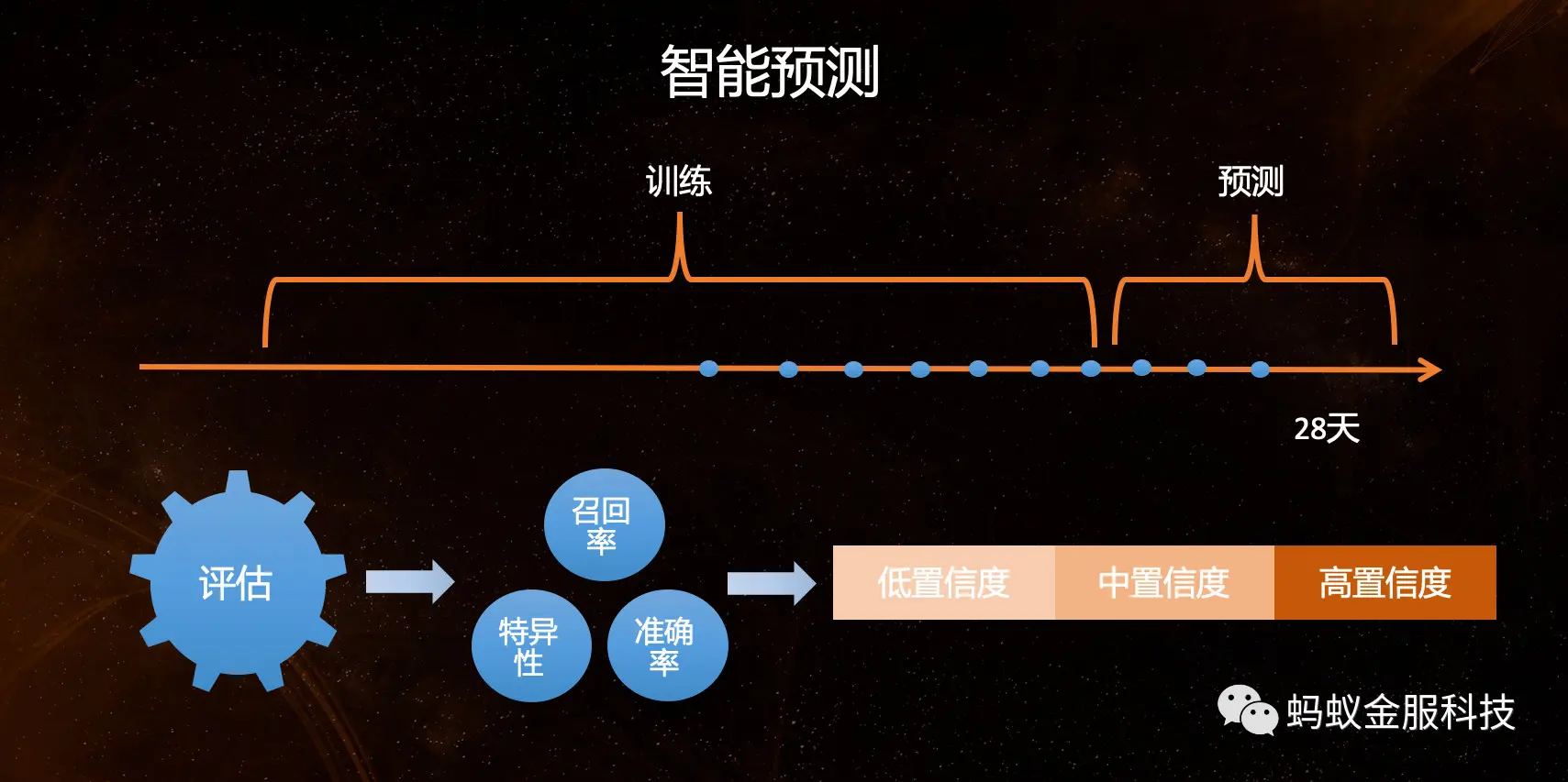 在训练过程中,召回率、特异性、准确率等关键指标将被用作评估模型预测精准度。当然,不同场景下的预测模型风险承受能力不同,智能预测内置了“低置信度、中置信度及高置信度”三个级别。置信度越高,误判率相对越低,但模型能够圈定的用户量也将越少。
