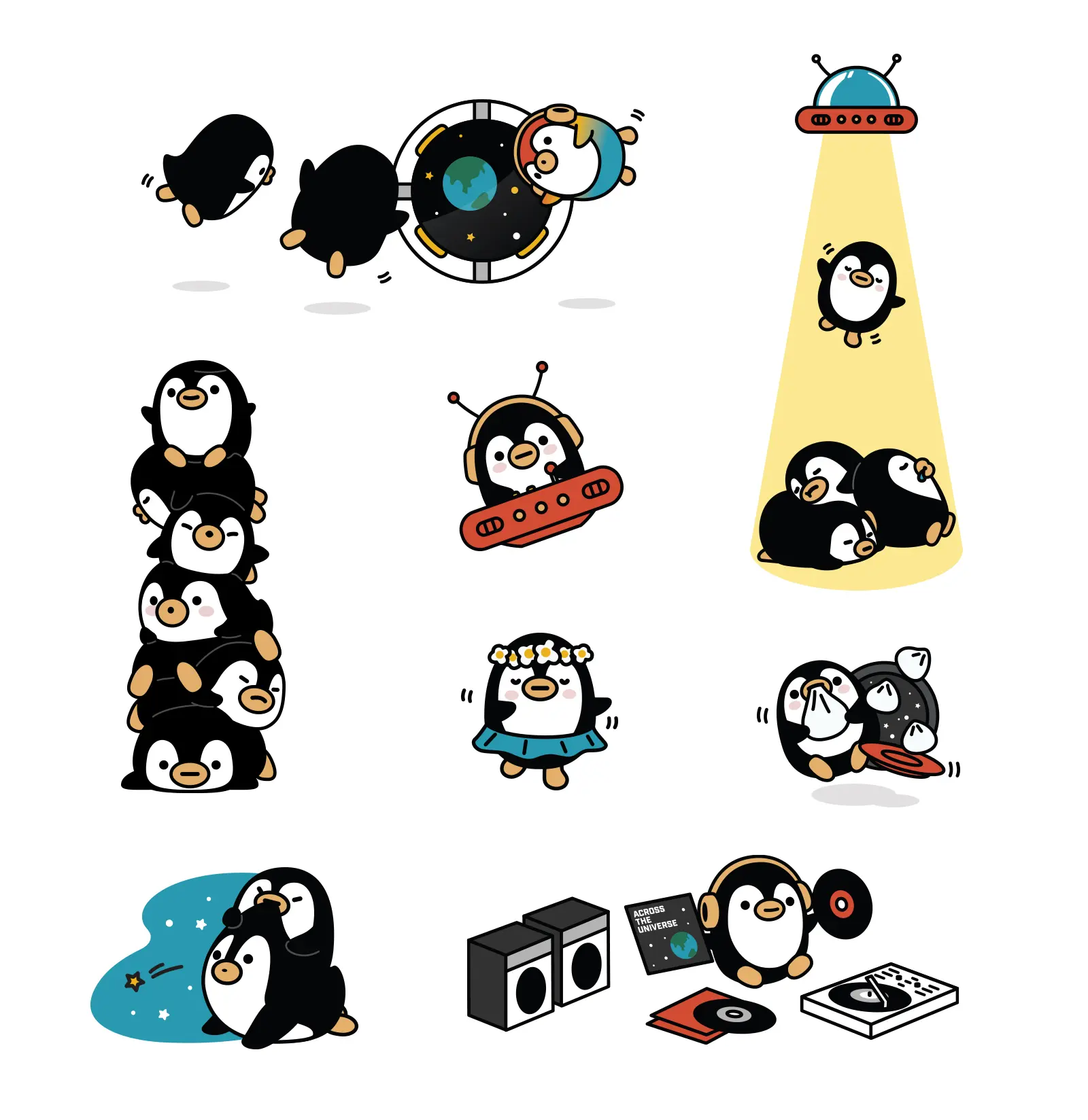 Lots of idea sketches were drawn before the final illustrations were done. Each concept was drawn while maintaining PUPU's rounded body. Color tones were limited to maintain the consistency of the graphic tone and simple elements were applied for the graphics even using thick and bold strokes.