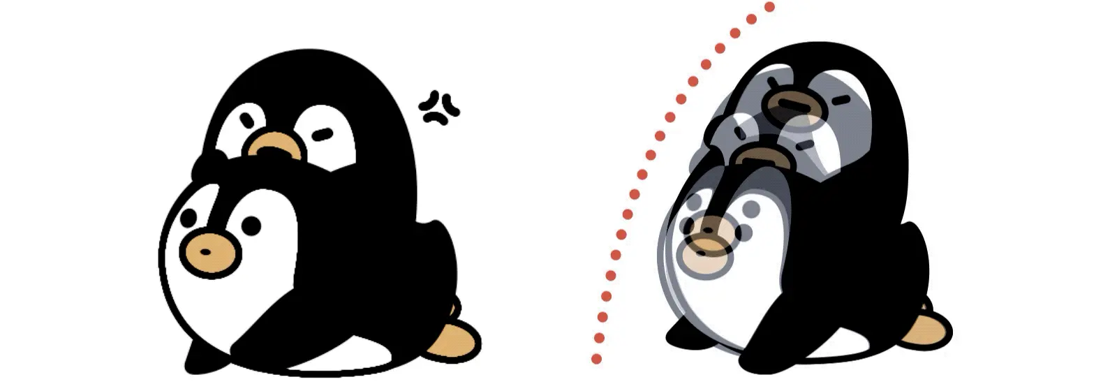 运动图形可以表达比单个图形更生动的情感。特别是pupu的身体是圆形的,没有关节,这限制了身体的运动。所以我用了一种细胞动画的方法来做更多的动态运动。