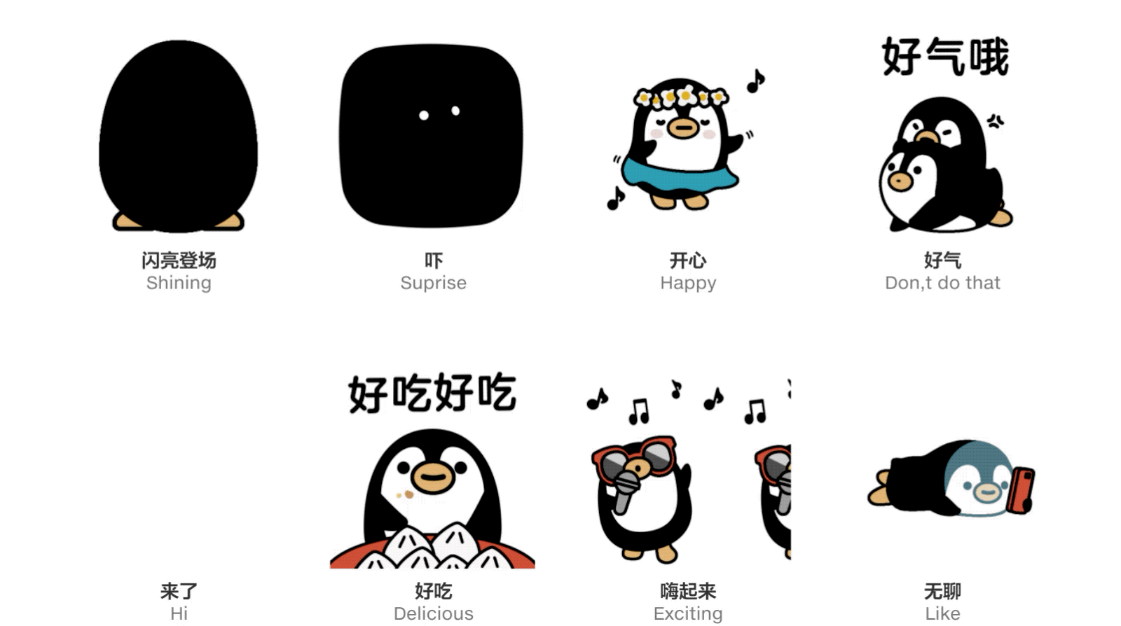 Based on these graphics, online sticker is designed to make the users feel PUPU more friendly. Users will use these online stickers to express their feelings and automatically remember PUPU as a more familiar and vivid character.