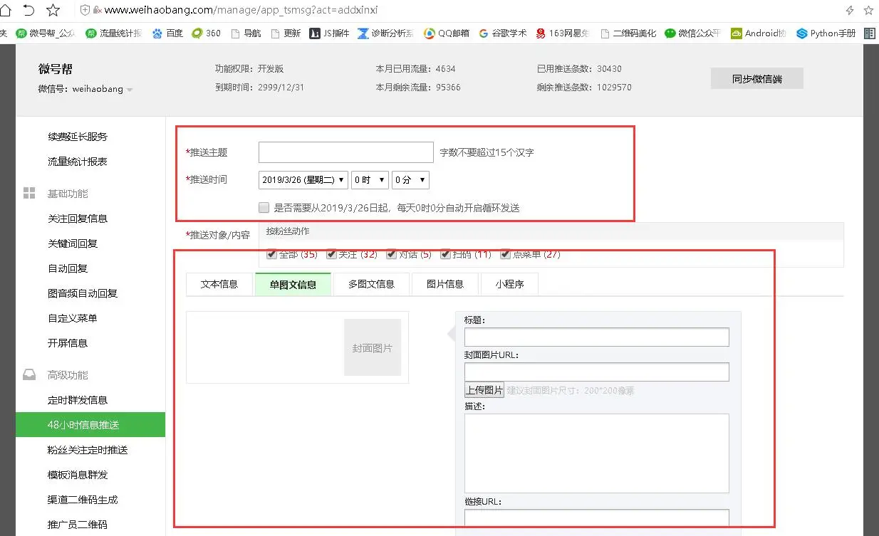 备注:添加48小时推送信息,勾选【是否需要从2019/3/26日起,每天0时0分自动开启循环发送】