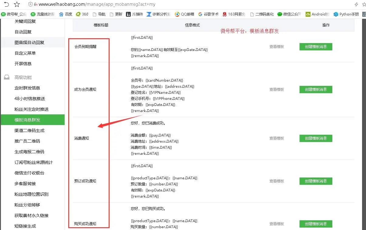(1)新建模板消息群发