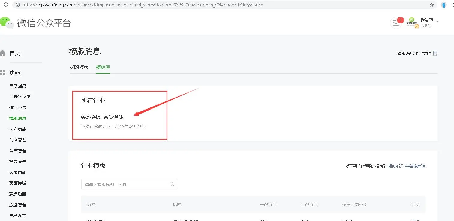 公众号后台把行业选择成如图所示,出来的模板非常合适公众号用户变现效果