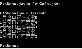 class MyThread implements Runnable{ private int ticket = 5; //5张票 public void run() { for (int i=0; i<=20; i++) { if (this.ticket > 0) { System.out.println(Thread.currentThread().getName()+ "正在卖票"+this.ticket--); } } }}public class lzwCode { public static void main(String [] args) { MyThread my = new MyThread(); new Thread(my, "1号窗口").start(); new Thread(my, "2号窗口").start(); new Thread(my, "3号窗口").start(); }}【运行结果】: