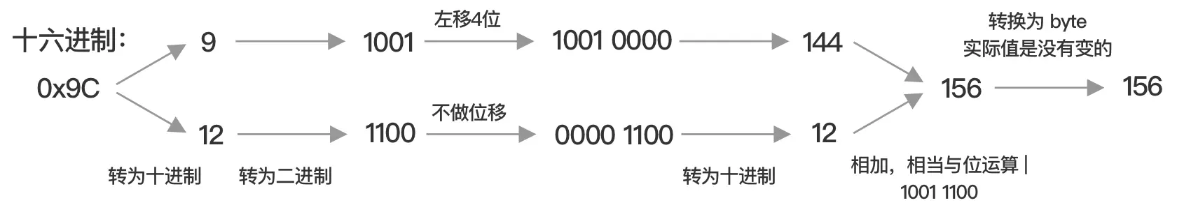 计算机中最小的传递单位就是 1 字节,一般使用 byte 来承载。我们在一般的开发中肯定会遇到这种在流中读取数据或字节数组转换成其他类型或在字节中读取相应位的数据等等业务场景,比如网络传输,蓝牙设备或物联网设备交互的场景,可能都会遇到。我举两个高位在前,低位在后的例子,这类操作一般都是使用位运算来实现。大家在业务中遇到其他的场景随机应变即可。