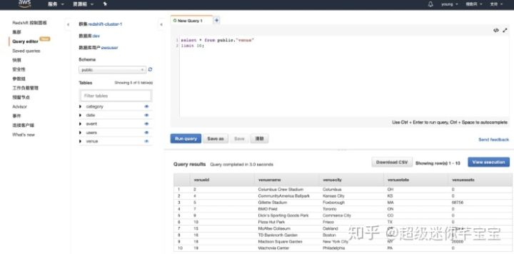 方式一:在AWS指定的query editor中进行数据预览,如下所示: