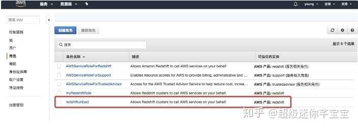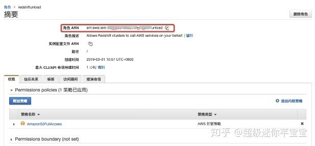 step5:打开刚定义的role并复制角色ARN。(unload命令会用到)