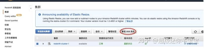 step6:进入Redshift集群,打开管理IAM角色