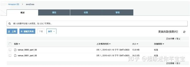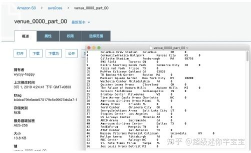 进入Amazon S3对应的存储桶中可以查看到有两份文件,且以venue_为前缀的,可以打开文件查看下数据。