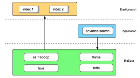 通过 Flume 收集搜索日志存储到 HDFS 供后续分析,也可以在通过 Hive 分析后导出作为搜索提示词,当然大数据为搜索业务提供的远不止于此,这里只是简单列举了几项功能。