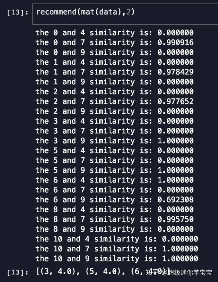 print('the %d and %d similarity is: %f' % (item, j, similarity))