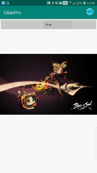 从loadGlide()方法中可以看到,Glide从所给的Url中先把图片下载好,接着将图片放置布局所设置的ImageView中,也就完成了图片的加载。我们来看看效果: