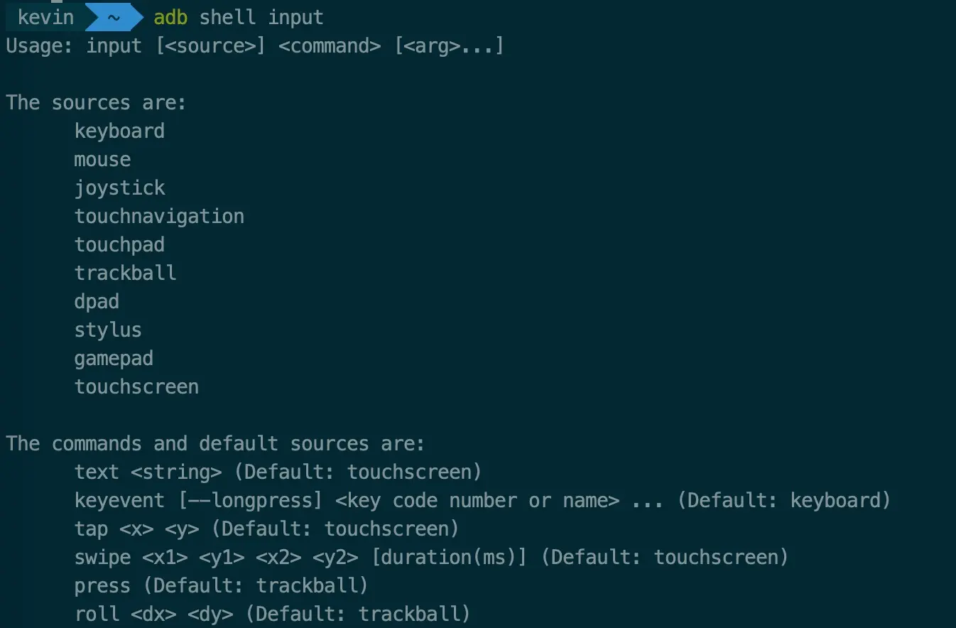 通过adb shell input可以模拟android各种输入事件,比如文字、按键、触摸等等。