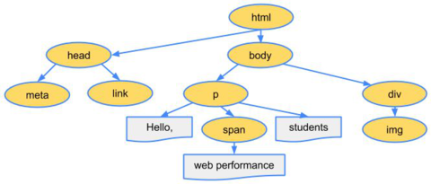 - 构建 DOM Tree:HTML 文件加载后,浏览器开始构建 DOM Tree,DOM Tree 就是描述 HTML 文档中元素层叠关系的一棵树,长这样